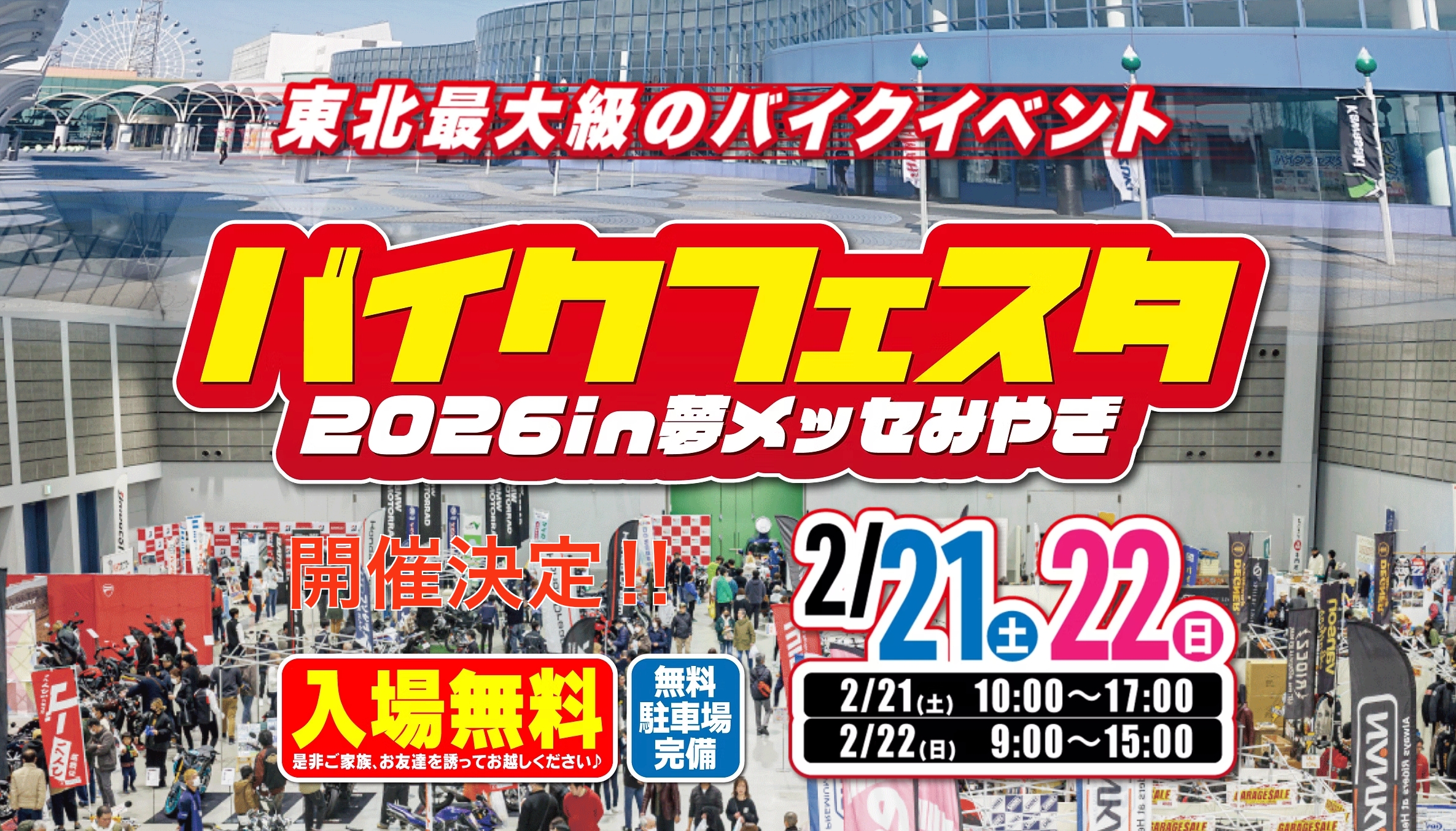 「バイクフェスタ2026」が、夢メッセみやぎにて開催されます。